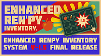 - June 08, 2025 by Patchmonk#Version 1.5 Final update, #Renpy inventory👋Hey everyone, As promised, the "final release" of version 1.5 of my Ren'Py Inventory System is now available. This update brings several important improvements, all focused on making the system mo... Continue reading